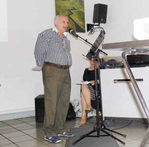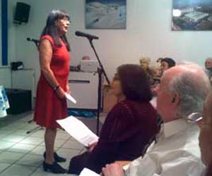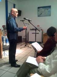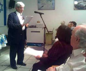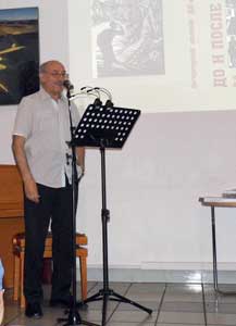 | Б. Лурик, руководитель научного общества, поздравляет Клуб с юбилейным альманахом. | Саади Исаков. | Анжелла Подольская. |