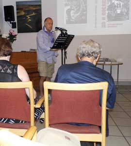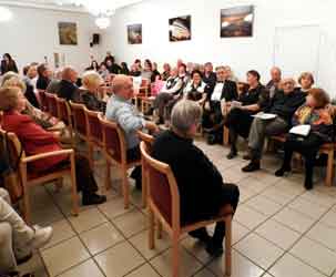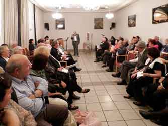 Во вступительном слове к вечеру было рассказано о том, что прошедший сезон был полон новых творческих свершений. Результатом их явились две книги Клуба: антология «На еврейской стороне улицы», которая была издана малым тиражом за счёт авторов и при поддержке Союза Писателей Межнационального Согласия ФРГ, представленной на пяти презентациях (две — в Берлине, три — в Израиле, в том числе, в Иерусалиме). Которая по просьбе Берлинского Еврейского Музея передана для её участия в выставке «A wie Jüdisch» (откроется 25 ноября 2018 г.), после которой антология займёт своё место на полках библиотеки музея. Вторая книга — Альманах «До и После» № 22. «22» — «возраст» Альманаха. Символично, что и еврейский алфавит содержит 22 буквы. Слово алфавит происходит от сплава двух первых букв древнееврейского алфавита — алеф и бет — «алефбет». Без алфавита невозможна литература... Презентация Альманаха, как обычно, представляла композицию из произведений, выстроенных по темам. Основной темой была, как всегда, вечная и кровоточащая рана о Холокосте — в стихах, в прозе, в публицистике. Прозвучали на презентации произведения и из других тем: о любви, о капризах природы, о философских раздумьях о жизненных мгновениях, об исследованиях о Миное и минойцах, о подтексте в незавершённой работе Г. Гейне к «Бахарахскому раввину», об исследованиях о еврейских экслибрисах (ими же иллюстрирован альманах), о Наоми Шемер, авторе слов и музыки ко второму гимну Израиля «Ерушалаим, шель загав», о воспоминаниях о С. Довлатове. Были представлены также переводы стихов: выдающегося еврейского поэта И. Мангера (почти не переведенного на русский язык) и израильского поэта Иегуды Амихая. На презентации выступали и «гости» Альманаха, работы которых были представлены в этом выпуске: рассказы и стихи, мемуары, статья об учёных — еврейских эмигрантах, которые и в эмиграции продолжают плодотворно трудиться. Все авторы Альманаха представлены портретами, выполненными художником М. Погребинским. |