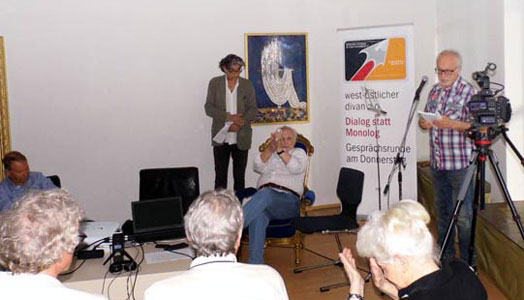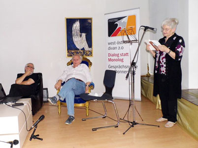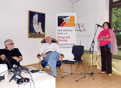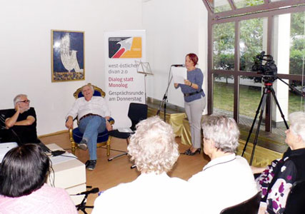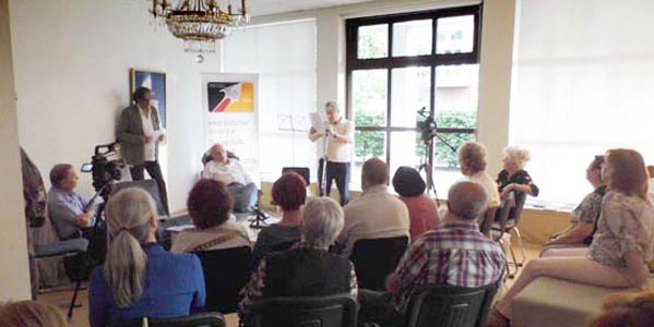 Встреча, на которой присутствовали представители немецкой стороны, проходила в виде дискуссии на двух языках: русском и немецком. Были затронуты важные вопросы интеграции русскоязычных авторов в немецкую культуру. Прозвучали произведения авторов на русском языке, много стихов немецких поэтов на языке оригинала и их переводы на русский. С немецкой стороны выступили – Frank Schumann, независимый издатель, автор, публицист и Heiner Sylvester, вицепрезидент Союза Писателей Межнационального Согласия ФРГ, автор и режиссёр.